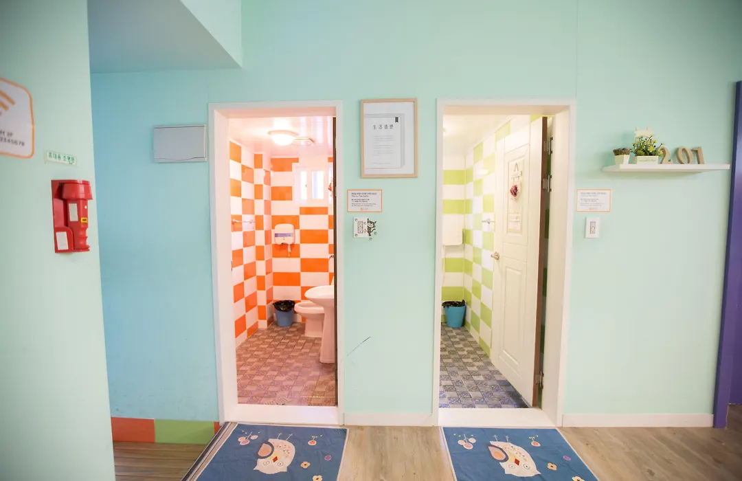 Sum Guest House Jeju Airport - Hostel에서 일부 객실에는 Wi-Fi, 휴게실, 식당이 갖춰져 있습니다. 이 숙박 시설은 25 객실로 구성되어 있습니다. 이 욕실에는 수건, 슬리퍼, 목욕 시트가 있습니다.